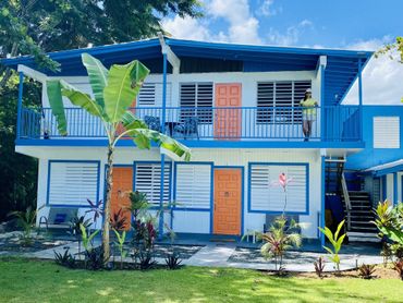 Our properties include four, two-bedroom apartments and a one-bedroom cabin – each is simple with a small living room, porch or balcony, bathroom and kitchen equipped with the basics. The Property is one of the few in the area with a yard and just steps from the shore of Aguada, on the west coast of Puerto Rico. Please note that they are cooled with fans, no A/C, just the ocean breeze. We do have WiFi, however, no phone or TV.