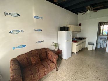 Our properties include four, two-bedroom apartments and a one-bedroom cabin – each is simple with a small living room, porch or balcony, bathroom and kitchen equipped with the basics. The Property is one of the few in the area with a yard and just steps from the shore of Aguada, on the west coast of Puerto Rico. Please note that they are cooled with fans, no A/C, just the ocean breeze. We do have WiFi, however, no phone or TV.